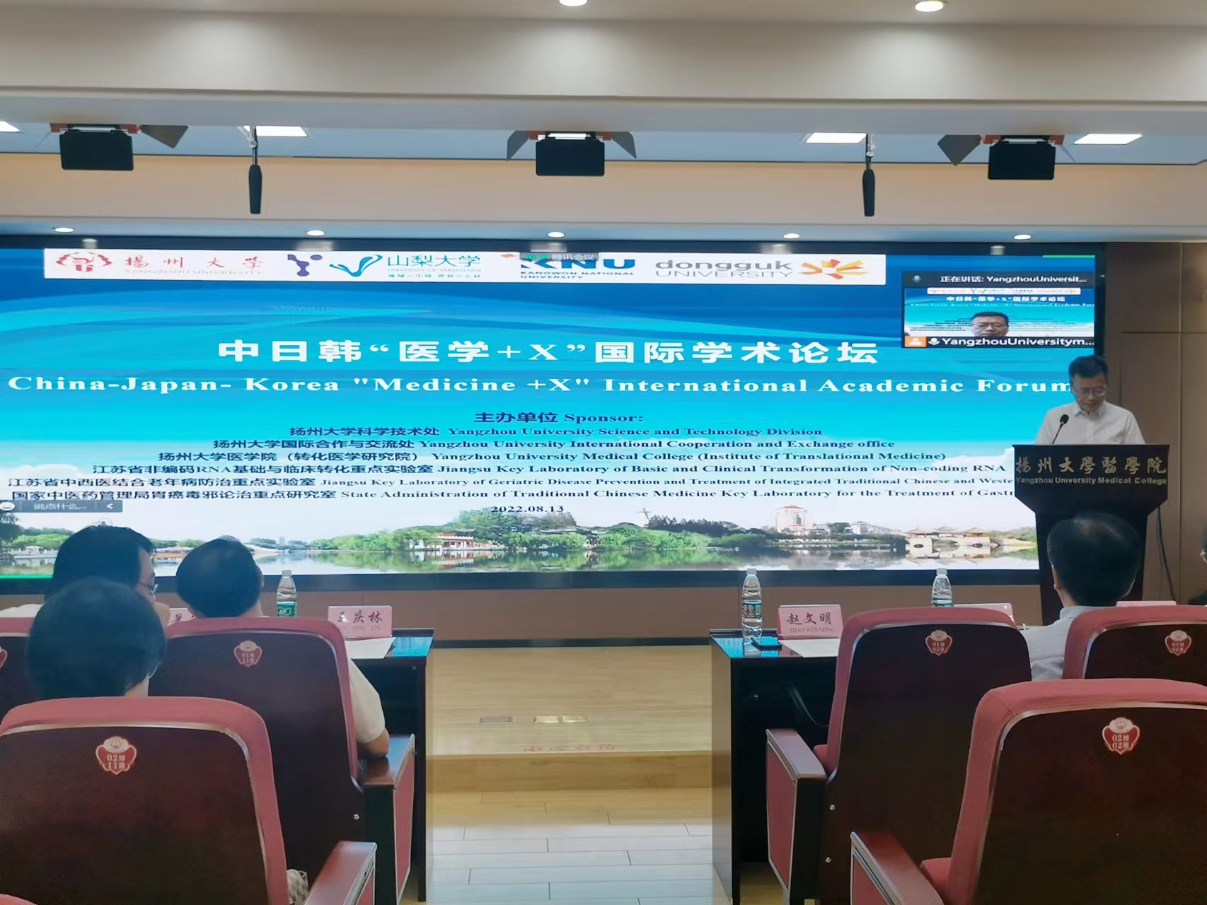 On August 13, the China-Japan-Korea “Medicine + X” International Academic Forum was held in YZU, where extensive academic exchanges were made by experts and young scholars from University of Yamanashi, Kangwon National University, Dongguk University and Yangzhou University Medical College. At this forum, in-depth discussions on preclinical medicine, clinical medicine, pharmacy, traditional Chinese medicine and interdisciplinary development were highlighted, aiming to promote academic exchanges and research cooperation of the three countries.