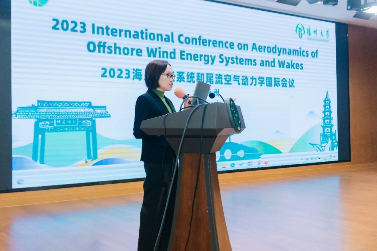 On November 27 and 28, Yangzhou University held the 2023 International Conference on Aerodynamics of Offshore Wind Energy Systems and Wakes.Vice President Gong Weijuan attended the conference and made a speech.
