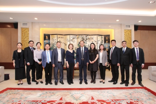 On April 29, the delegation led by Silvana Alcoz, expert from the World Meteorological Organization (WMO), visited Yangzhou University. President Ding Jianning met with the guests.