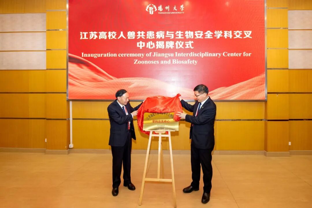 Subsequently, President Liu Qiaoquan and Professor Jiao Xin’an, Director of the Jiangsu Interdisciplinary Center for Zoonoses and Biosafety, jointly unveiled the plaque for the “Jiangsu Interdisciplinary Center for Zoonoses and Biosafety.”