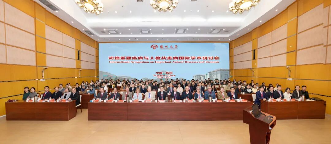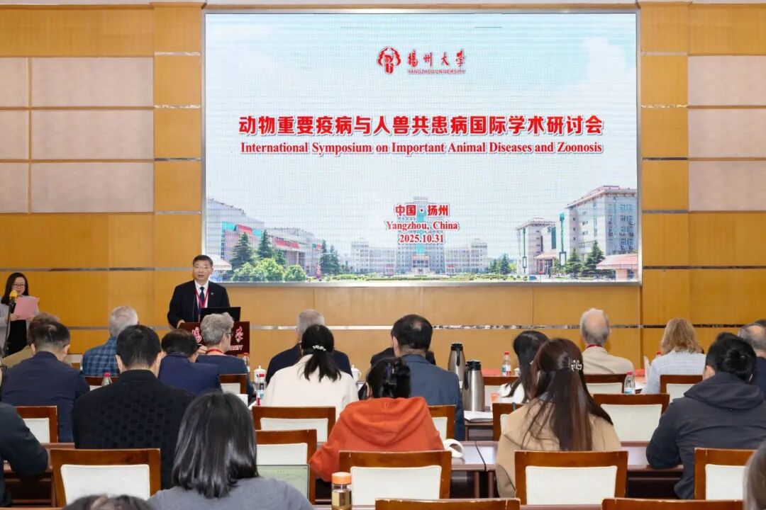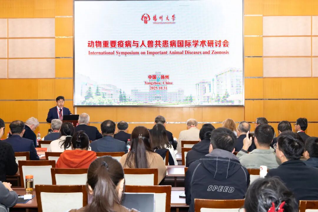 On October 31, collegeof veterinary medicinegrandly held the 2025 International Symposium on Major Animal Diseases and Zoonoses in the multi-function hall on the second floor of the main teaching building at Yangzhou University’s Hehuachi Campus. The conference was jointly organized by the Jiangsu Provincial Collaborative Innovation Center for Prevention and Control of Major Animal Diseases and Zoonoses, the“111 Program”Innovation Introduction Base for Prevention and Control of Major Animal Diseases and Zoonoses, the Jiangsu Interdisciplinary Center for Zoonoses and Biosafety, the Jiangsu Provincial Key Laboratory of Zoonoses, the Jiangsu Key Laboratory of Animal Disease Prevention and Control and Biosafety, the Ministry of Education Key Laboratory of Avian Preventive Medicine, the Jiangsu International Joint Laboratory on Prevention and Control Technology for Major Animal Diseases and Zoonoses, the Yangzhou University“Belt and Road”Joint Laboratory for Food Grain and Safety, and the College of Veterinary Medicine/Institute of Comparative Medicine at Yangzhou University.