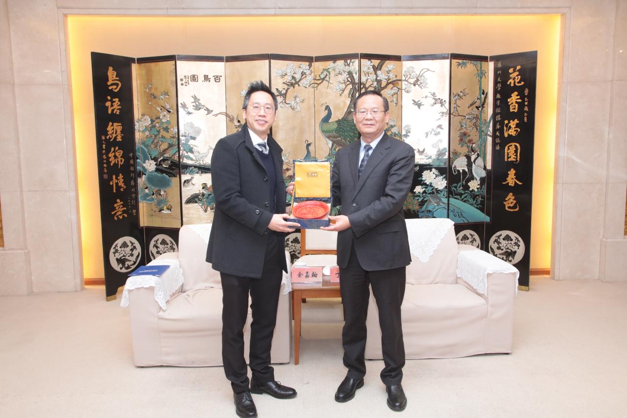 On December 18, Professor She Jiahan from the Li Ka Shing Faculty of Medicine atthe University of Hong Kong and his delegation visitedYangzhou University. Ding Jianning,Secretaryof CPC Yangzhou University Committeemet with the guests, and Vice Presidents Gong Weijuan and Cai Yiwei attended the event.