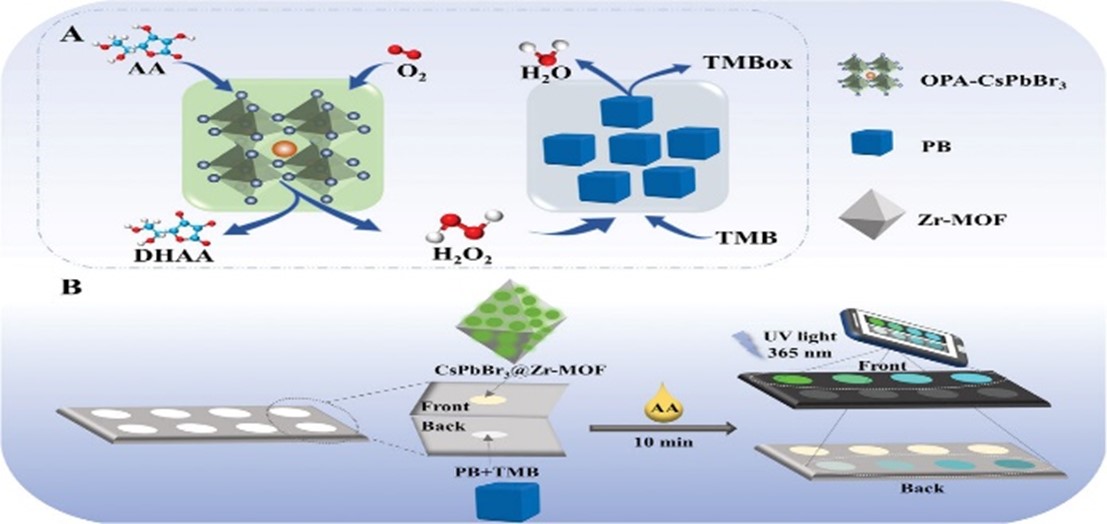 On August 27, Associate Professor Shu Yun of Yangzhou University and Professor Pang Huan collaborated to utilize the multifunctional CsPbBr3 @ Zr-MOF with oxidase-like activity and Prussian blue with peroxidase-like activity to construct a full-nanometer enzyme cascade system so as to realize dual-mode sensing (ratiometric fluorescence and colorimetric). The research finding was published in the high-level journal Advanced Science with the title of “Amphiphilic Polymer Capped Perovskite Compositing with NanoZr-MOF for Nanozyme-Involved Biomimetic Cascade Catalysis”.