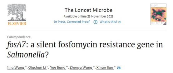 On November 23, Prof. Xinan Jiao's team from College of Bioscience and Biotechnology published online an article entitled "fosA7: a silent fosfomycin resistance gene in Salmonella? " in Lancet Microbe(Doi: 10.1016/S2666-5247(23)00342-7), revealing that fosA7 is widely prevalent as a silent fosfomycin resistance gene in Salmonella.