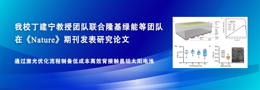 On October 1, Professor Ding Jianning's team, under the cooperation with Longi Green Energy Technology, published a paper with the title of "Silicon heterojunction back contact solar cells by laser patterning"in Nature, an internationally renowned academic journal. This paper reported the research finding of preparing low-cost and high-efficiency back-contact crystalline silicon solar cells by laser optimization process.