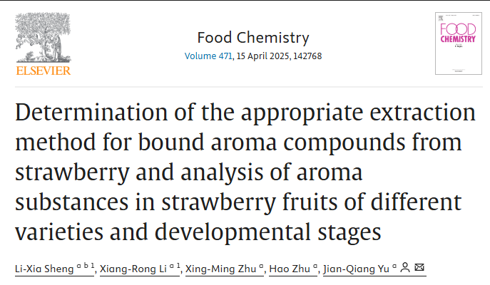 Recently,Professor Sheng Li Xia from College of Horticulture and Landscape Architecture published a research paper entitled Determination of the appropriate extraction method for bound aroma compounds from strawberry and analysis of aroma substances in strawberry fruits of different varieties and developmental stages in Food Chemistry. This study optimized and clarified the extraction and determination methods of bound aroma compounds in strawberries, and revealed the sources of aroma differences in different varieties of strawberries.